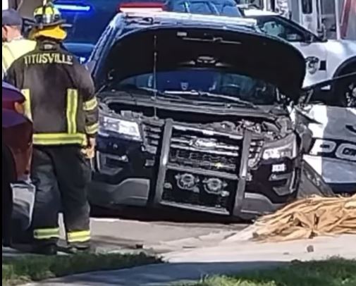 The Titusville Police Department said the officers were responding to the call in the area of Hopkins near Acorn Avenue around 8:55 a.m. when the crash happened.